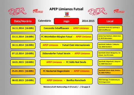 A primeira jornada do Campeonato Suíço Liga B de Futsal está agendado para dia 29 de Novembro 2015.
